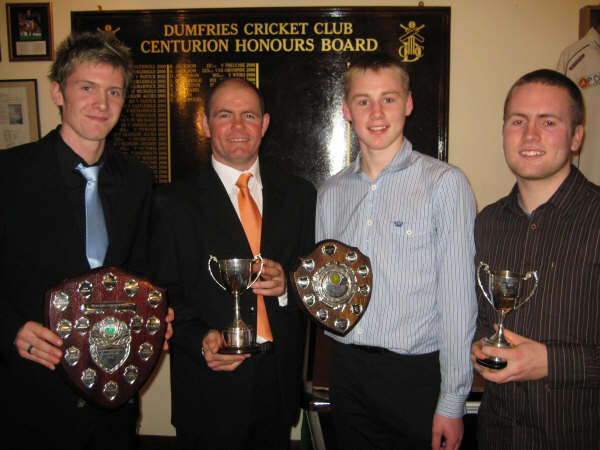 The Annual Dumfries Cricket Club Awards were held at the Dumfries Sports Club at Nunholm last weekend. A big turnout, including major sponsors APD and JMS, saw the four main club awards presented.
