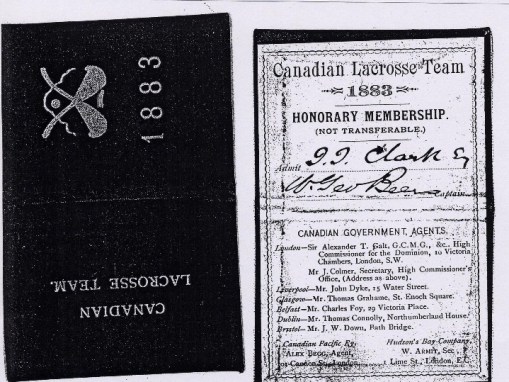 Canadian Lacrosse Team Membership Card 1883