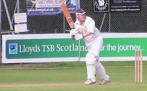 At Nunholm Dumfries opted to bat first but suffered early setbacks against the Ferguslie SNCL opening attack. Davie Davidson and Geary had revived the innings with a fifty partnership when Davidson was out caught for 38. Stuart Corbett-Byers and Geary carried on with another fifty partnership until Geary was bowled for a valuable 42. Then Byers fell LBW for 33 at the same score.