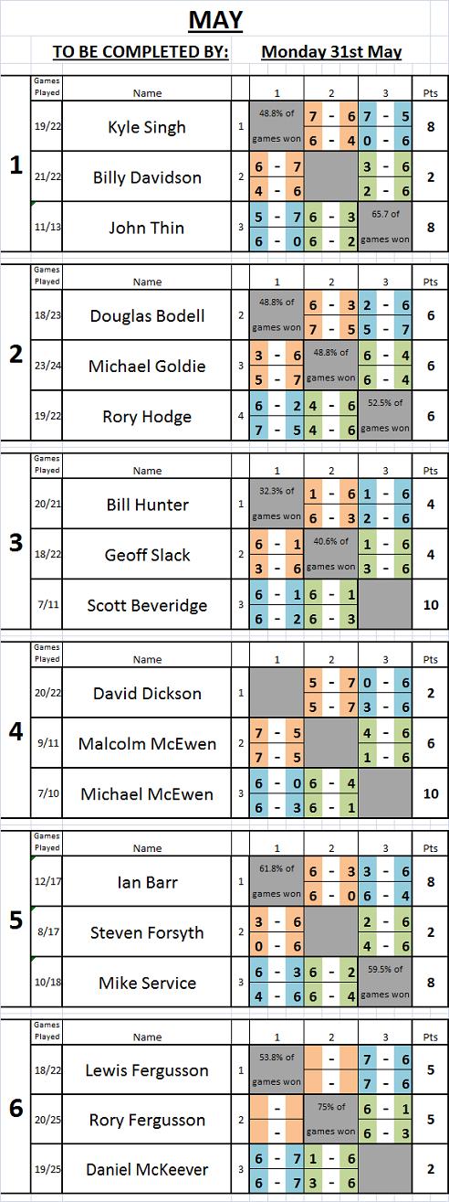 The Tennis Leagues for June are now on the site here or can be found in the Quick Links in the right hand site column.