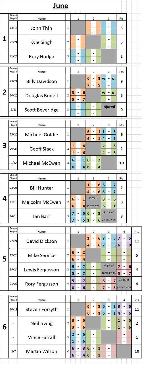 The Tennis Leagues for July are now on the site here or can be found in the Quick Links in the right hand site column.