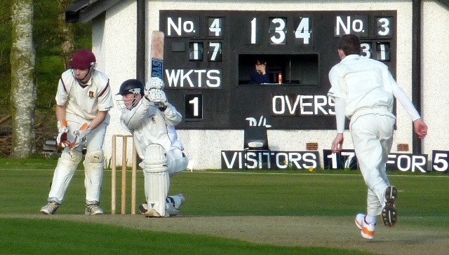 The top four of Uddingston scored a hundred and eighty between them as they reached 231 for 9. The Dumfries top order had a difficult day and after being 14 for 4 the side only reached 114 with Robert McBride top scoring with 35.The bright note for the Nunholm side was the four wickets taken by 15 year old Niall Alexander who was the side’s Southwest Insulation Man of the Match.