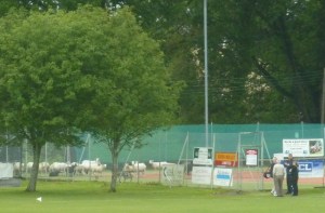 A flock of sheep leapt at the chance of pastures new and had a practice in the nets and even tried out the tennis courts.