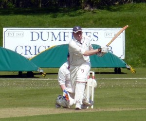 From a precarious position of 4 for 2, Dumfries rallied with a seventy run partnership between Scott Beveridge and Josh Geary. Geary had just reached his fifty when he was bowled sweeping with the total just past the hundred and it required another partnership between Joe Clarke and Pat Druce to restore fortunes again from seven down for 143. With only a handful of overs left Clarke was run out for an important 54, as was Druce for 20, and the final wicket fell on 199.