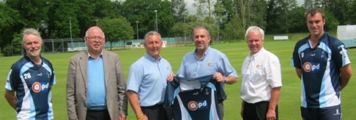 Club sponsors Elliot Graham, Jim Main and John Strong of APD try out their Dumfries Cup shirts.