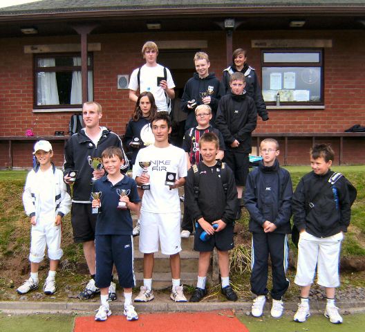 With the forecast of rain play got under way at 10.30 but unfortunately was suspended at 1.30pm but all the first round matches were completed with Ben Mckiddie edging past Malcolm McEwen 7-6, 2-6, 10-4, Dan McKiddie beating Chad Lawson 6-1, 7-5, Alex Shearman beating Mark Rogerson 6-1, 6-1, Paul Boardman beating Ben Keal 6-1, 6-0, current holder Colin Dunbar beating Lewis Gilmour 6-4, 6-0, Stephen White beating Kyle Singh 6-2, 6-0, Richie Cunningham beating Mitchell Cowie 6-3, 6-0 & Brian Litster beating Euan McGlynn 6-4, 6-1.